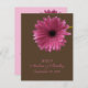 The text and background colour on this pink gerbera daisy response card is fully customisable. You can change the text using the personalise option. For more extensive changes to the card, including changing the background colour, font, font colour, or text layout, choose the customise option. This is a great response card for a summer or fall wedding with a pink gerbera with brown theme. Simple, pretty, and cheerful. This card is currently customised for a wedding, but would also work great for a bridal shower, special birthday, anniversary, garden party, etc. All you need to do is change the wording. Also, by changing the wording, this card can easily become a reception, direction, or accommodation card.