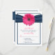 The text and background colour on this pink gerbera daisy and navy satin ribbon response or rsvp card is fully customisable. To change the text, use the personalise option. For more extensive text changes, such as changes to the font, font colour, font size, text layout or background colour, use the customise option. The colours on this card are pink, navy or marine blue, and white. This card is currently setup to print on the linen paper type, but would look nice on any of the other paper types. Some paper type changes will change the background colour. This card would also work well as a direction, reception, or accommodation card. All you need to do is change the text.