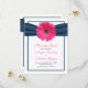 Pink Gerbera with Navy Ribbon Save the Date Card