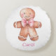 What is cuter than a pink gingerbread person? Not much, is our opinion. This sweet, smiling little gingerbread person, sports a cute pink bow for Christmas. It is from a vintage, watercolor design. We've added an example name, so you can enter one of your choice to personalise this holiday round throw pillow.