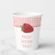 These paper cup are ready to be customised with your own messages with a spot to add a message on the front and on the back. They features a border of pink gingham accented with ripe red strawberries. Your messages appear in coordinating pink lettering.