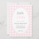 Celebrate the arrival of your baby girl in style with this charming Gingham Baby Shower invitation. Featuring a gingham pattern and oval frame, paired with a script typography and minimalist font, this design blends timeless elegance with modern flair. Sophisticated, sweet, and sure to leave a lasting impression. Easily customize it by clicking "Personalize this design".
