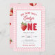Pink Gingham Berry First Strawberry Themed Invitation