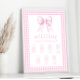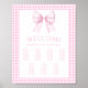 Explore sophistication with our elegant preppy baby girl shower seating chart sign poster, adorned with a charming baby pink bow ribbon set against a backdrop of classic gingham pattern. Perfect for welcoming guests to your celebration with style and refinement.