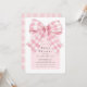 Celebrate the upcoming arrival of your little girl with our charming pink gingham bow baby shower invitation. This delightful design features a coquette bow that adds a touch of elegance and whimsy, perfectly capturing the joy of this special occasion. Make your baby shower unforgettable with this adorable and stylish invitation that reflects your love and anticipation for your new bundle of joy.
