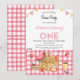 Pink Gingham Bunting Flags Picnic 1st Birthday Invitation