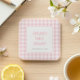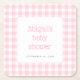 Pink Gingham Check Rustic Girls Baby Shower Square Paper Coaster