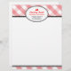 Make a memorable impression with these charming gingham pattern letterhead. This fully customisable business stationery is perfect for professionals or businesses that need to project a bold, wholesome image. Your name and contact information are set within a bead oval frame, adorn with a pair of cherries.