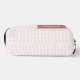 A cute pink gingham makeup bag with a classic plaid pattern. This simple, elegant, and trendy toiletry case is a feminine and modern organizer, perfect for her, your daughter, or as a pretty pastel gift for back-to-school, spring, and summer.
