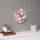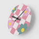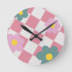 Pink Gingham Floral Pattern – Retro Cute Flower Round Clock