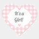 This is a sweet girly design for baby shower favour gift jelly jars, this heart shaped sticker label features a background in a timeless gingham pattern of pale baby pink and white with a white oval and grey font. There are two pink hearts and the words: It's a Girl! All text fields are templates to make it easy for you to customise. These work great for jam and preserves too. The pink colour is perfect for strawberry or raspberry jam. #it'sagirl #babyshower #favours #jellyjar #label #pink #gingham #berry #genderreveal #newbaby #expectantparents #newparents #newmom #newdad