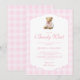 Pink Gingham Girl We Can Bearly Wait Baby Shower Invitation