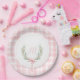 A classic pink gingham watercolor with a laurel crest with bow for initial monogram.