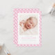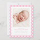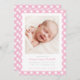 Announce your little one's arrival to the world with this adorable pink and white gingham birth announcement. It features a single photo along with space for all of the information about your newest arrival. The back of the card features a matching pink gingham pattern.