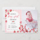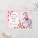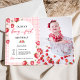 Pink Gingham Strawberry 1st Birthday Photo Invitation