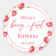Pink Gingham Strawberry Birthday Classic Round Sticker