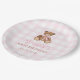 Pink Gingham Teddy Bear Beary First Birthday Paper Plate