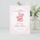 Pink Gingham Teddy Bear Neutral Baby Shower Invitation