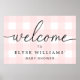The welcome sign features a timeless gingham design with a hand-lettered script font. The script heading is an image that cannot be edited. All of the other text is fully editable. For more advanced customisation of this design, simply select the "Customise It" button above.