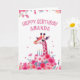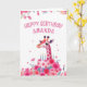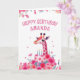 Pink Giraffe and Floral Cake Birthday Card
