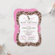 It's a girl! Cute, elegant girly pink giraffe baby shower invite on pink and brown giraffe animal print pattern with vintage formal look. Great for jungle, zoo animals theme baby showers. Retro bracket shape invitation.