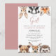 Pink Girl Cute Forest Woodland Animals Baby Shower Invitation