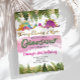 Pink and gold cute girl dinosaur jungle birthday invitation.