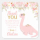 Made to match out cute pink floral dinosaur invitations, these square stickers are adorned with a floral rose wall and a pink dinosaur along with a thank you message for your guests.