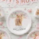 Pink Girl Floral Highland Cow Calf Baby Shower Paper Plate