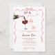 Whimsical Sip and See Pink Girl Baby Shower Invitation, Pink Quirky Stripes Coquette Bow Baby Shower Invite, Wine and Milk Baby Shower Invitation