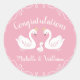 Pink Girl Swans Baby Shower Classic Round Sticker