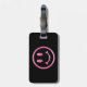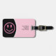 Pink girly smile face luggage tags for girls who love pink things with text you can personalise. Easily find your bag at the gym, while you are travelling or on the bus with your own pretty pink style. Make it personal by adding your name and address. Best ID tags for your luggage, gym bag, school bag, or for anyone who loves cute girly things.