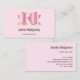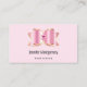 Business cards with a glitzy shiny bow with gold outline and a faceted pink gemstone in the centre. Feminine luxury glam.
