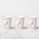 Serve drinks in sweet style with these personalised pink baby shower paper cups, featuring faux glitter baby footprints and a coordinating diagonal stripe border. Perfect for a girl baby shower or soft pink party theme, these printed cups can be customised with the honoree’s name and shower date. A charming and functional way to tie your table décor together.