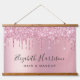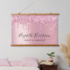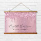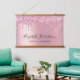 Chic and elegant hanging tapestry sign featuring pink faux glitter drips and your name in a trendy script against a pink faux foil background. Perfect for beauty salons, makeup artists, hair stylists and estheticians.