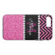 Pink Glitter Black Chevron Monogram Girly Case-Mate iPhone Case