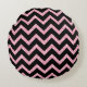Pink Glitter Black Chevron Zigzag Pattern Round Cushion
