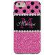 Pink Glitter Black Polka Dots Monogrammed Case-Mate iPhone Case
