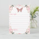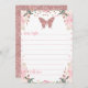 Sweet butterfly themed birthday party time capsule card featuring two lovely watercolor pink floral arrangements and faux pink glitter butterfly.