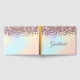 This lovely guestbook has a (faux) pink glitter pattern printed at the top cascading down from above on both the front and the back, over a lovely, dreamy pattern of pastel pinks, blues, and yellows featuring in the background. It has a golden spine, and the text ('Guestbook') on the front can be personalised to suit, or just left as is. This elegant guestbook would be suitable for any number of important occasions and celebrations, from weddings to 21st birthdays, engagement parties, wedding anniversary celebrations and more to provide you with a lovely keepsake of your important event.