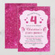 Pink glitter cute vibrant sparkling 4th birthday invitation