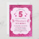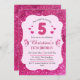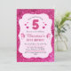 Pink glitter cute vibrant sparkling 5th birthday invitation