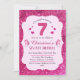Pink glitter cute vibrant sparkling 7th birthday invitation