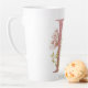Pretty latte mug features pink glitter initial / letter F with gold leaves and swirls and coppery butterfly overlay