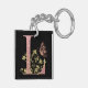 Pink Glitter Floral Letter L Key Ring