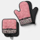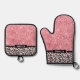Pink Glitter Leopard Print Shimmer Personalised Oven Mitt & Pot Holder Set
