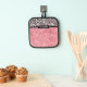 Pink Glitter Leopard Print Shimmer Personalised Pot Holders features an elegant pink glitter with a pink and black shimmer leopard print pattern with your personalised name in the centre. Personalise by editing the text in the text boxes. Designed for you by ©Evco Studio www.zazzle.com/store/evcostudio