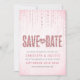 This lovely save the date announcement design by The Spotted Olive™ features a pretty soft pink background with an image of sparkly gems and the words "Save The Date" stylishly typeset and filled with an image of pink glitter. PLEASE NOTE: THIS DESIGN ONLY FEATURES A PRINTED IMAGE OF GLITTER; THERE IS NO PHYSICAL GLITTER USED OR INCLUDED; THERE ARE NO EMBELLISHMENTS. THIS IS A FLAT PRINTED INVITATION. Copyright 2013-Present | The Spotted Olive™ | All Rights Reserved
