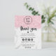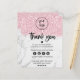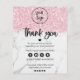 Pretty pink glitter marble business thank you for your order card. Social media icons can be deleted or moved around by clicking "customise further" while personalising. Simple and modern with a script font. Change the colour of hearts and stars if you wish.