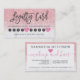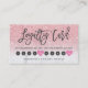 Elegant chic pink glitter sparkles white marble script makeup hair pink heart loyalty card with modern hand lettering style brush typography on white , a simple, professional and minimalist card. offer 10 treatments and discount to your customers.